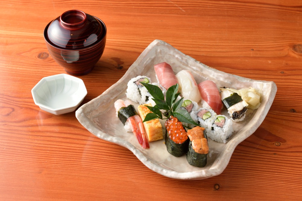 | にぎりセット にぎり寿司、茶碗蒸し、お椀、小鉢 |